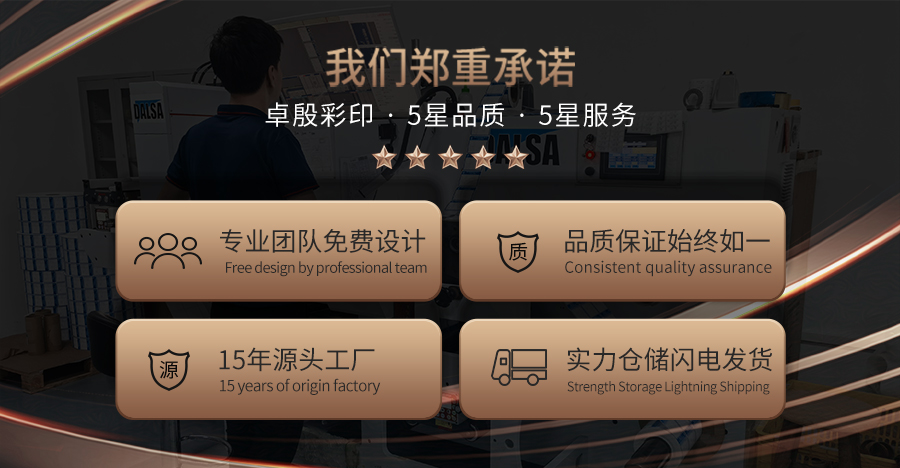 品德是公司建立以來不時走向勝利的基石。印刷品德歸根究竟仍是在于堅持一向性。不管是單次印數仍是一次印數到另外一次印數,每個標簽必須和前一個標簽品德一樣好。咱們鼎力實行的品德打算和合資歷的手藝撐持職員撐持一切裝潢辦事,以確保品德成果一直如一。咱們經由過程了品德辦理系統認證,確保每個裝潢您產物的標簽都品德上乘。咱們對辦事的許諾和品德保障一樣主要。從設想到花費,您的投資都有事跡保障,咱們不只保障產物德量,并且對裝瓶利用、運輸和存儲環境作出保障。